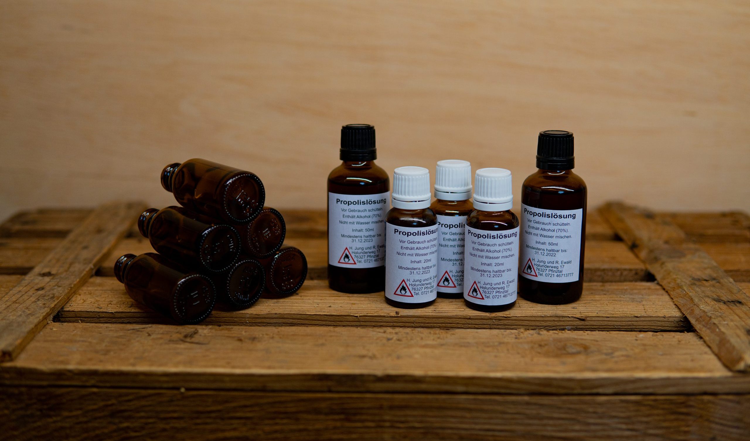 Sie erhalten vor uns Rohpropolis und eine Anleitung zur Herstellung der Lösung.